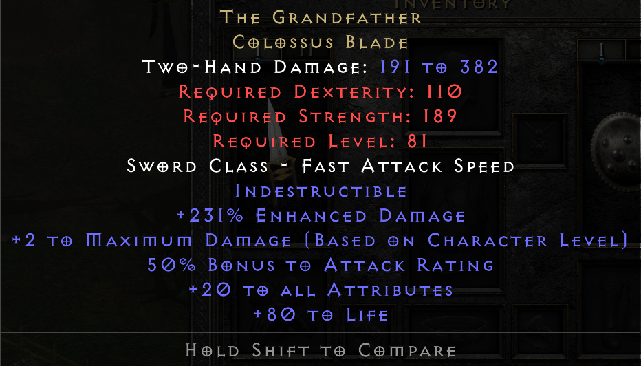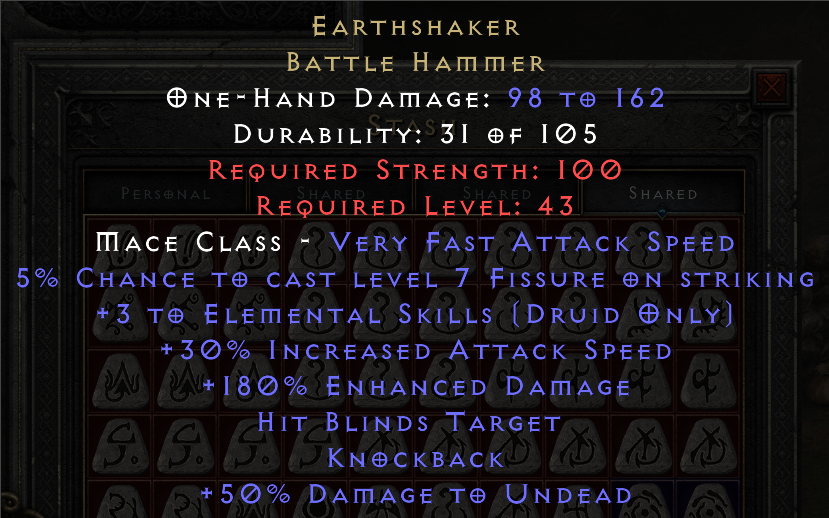 This tool provides a means of tracking and sharing your progress towards the Holy Grail. Completing a standard Holy Grail means collecting all Uniques, Sets, and Runes in the game. When marking each item as found, you may include several details about the drop. If you are playing offline, you can also upload .d2s or .d2i (Shared Stash) files to automatically import your collection.