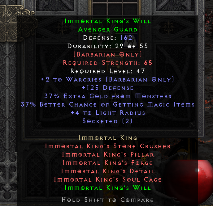 This tool provides a means of tracking and sharing your progress towards the Holy Grail. Completing a standard Holy Grail means collecting all Uniques, Sets, and Runes in the game. When marking each item as found, you may include several details about the drop. If you are playing offline, you can also upload .d2s or .d2i (Shared Stash) files to automatically import your collection.