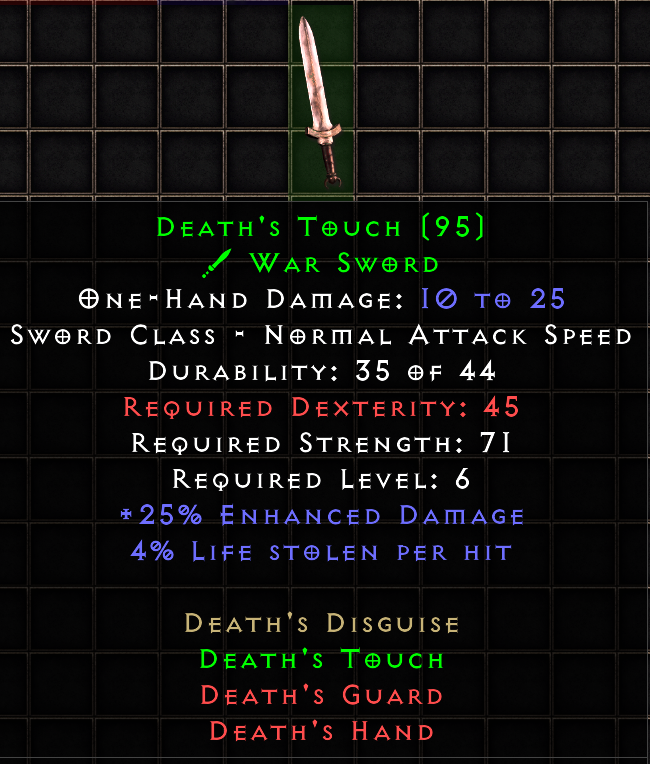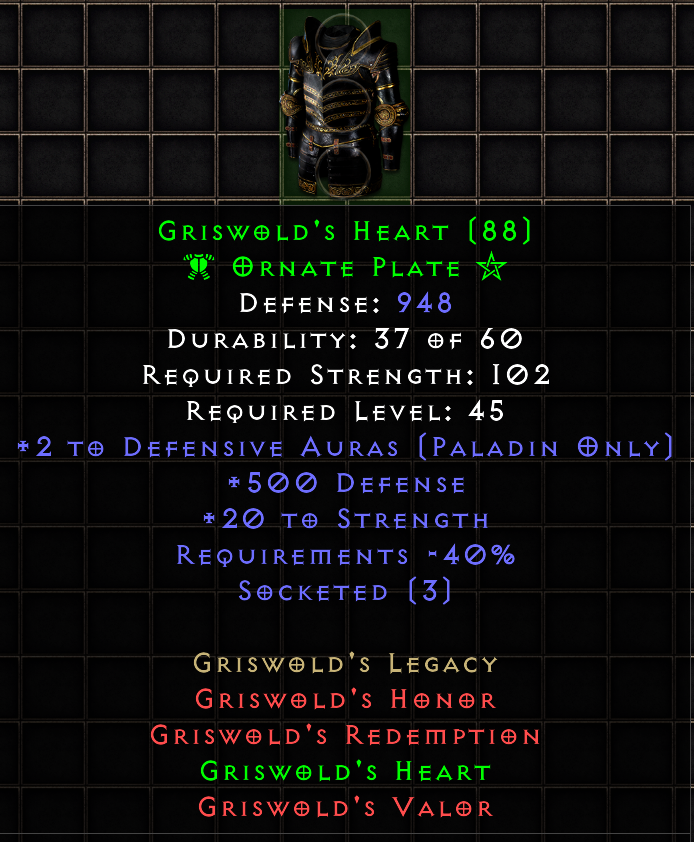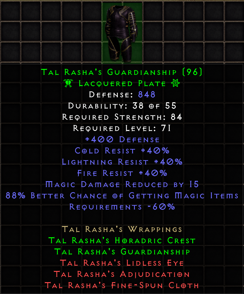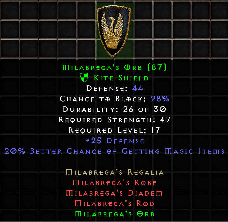 This tool provides a means of tracking and sharing your progress towards the Holy Grail. Completing a standard Holy Grail means collecting all Uniques, Sets, and Runes in the game. When marking each item as found, you may include several details about the drop. If you are playing offline, you can also upload .d2s or .d2i (Shared Stash) files to automatically import your collection.