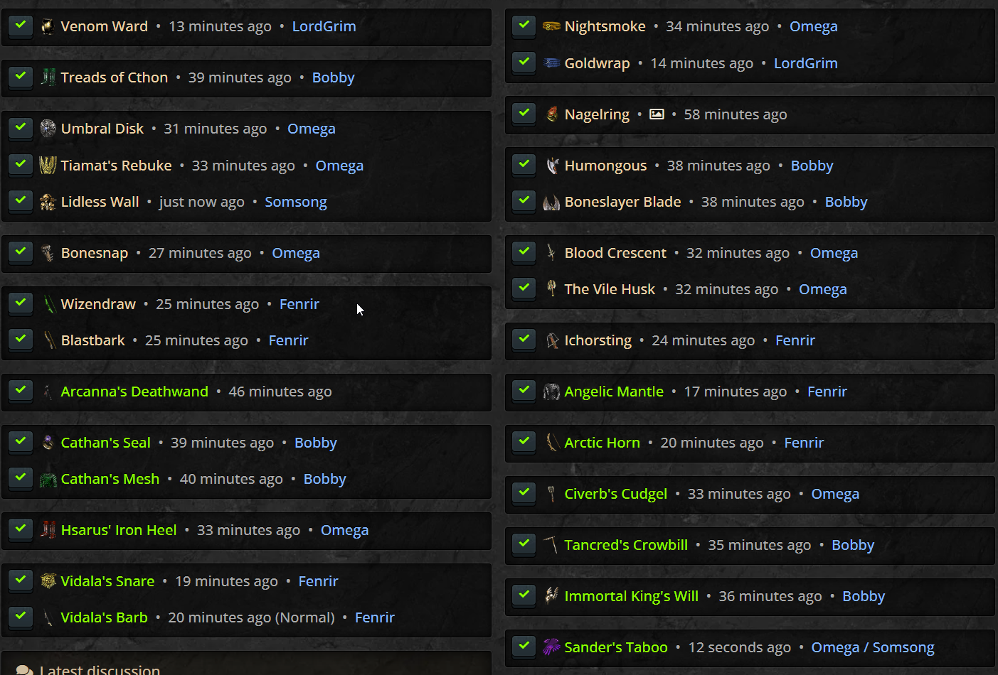 This tool provides a means of tracking and sharing your progress towards the Holy Grail. Completing a standard Holy Grail means collecting all Uniques, Sets, and Runes in the game. When marking each item as found, you may include several details about the drop. If you are playing offline, you can also upload .d2s or .d2i (Shared Stash) files to automatically import your collection.