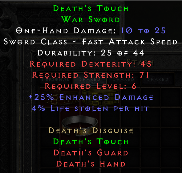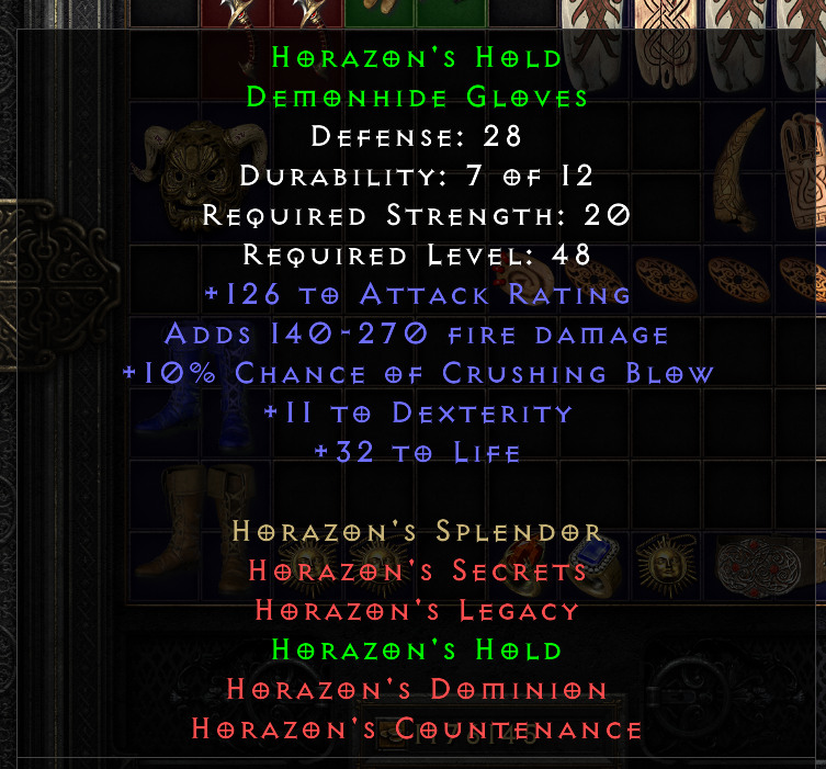 This tool provides a means of tracking and sharing progress towards the Holy Grail on RotW. Completing a standard Holy Grail means collecting all Uniques, Sets, and Runes in the game. When marking each item as found, you may include several details about the drop. If you are playing offline, you can also upload .d2s or .d2i (Shared Stash) files to automatically import your collection.