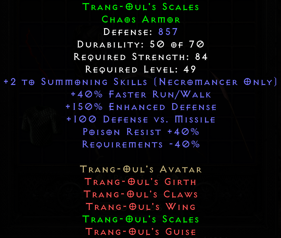 This tool provides a means of tracking and sharing progress towards the Holy Grail on RotW. Completing a standard Holy Grail means collecting all Uniques, Sets, and Runes in the game. When marking each item as found, you may include several details about the drop. If you are playing offline, you can also upload .d2s or .d2i (Shared Stash) files to automatically import your collection.