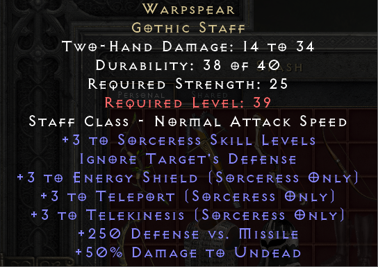 • Sorceress, Equipped