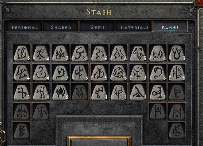 This includes Runes, Gems, Quest Items, Keys, Materials, and anything else in the 'Misc' section of the database.