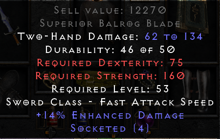 Filter search results by item qualities such as ethereal, superior, sockets, unid etc.