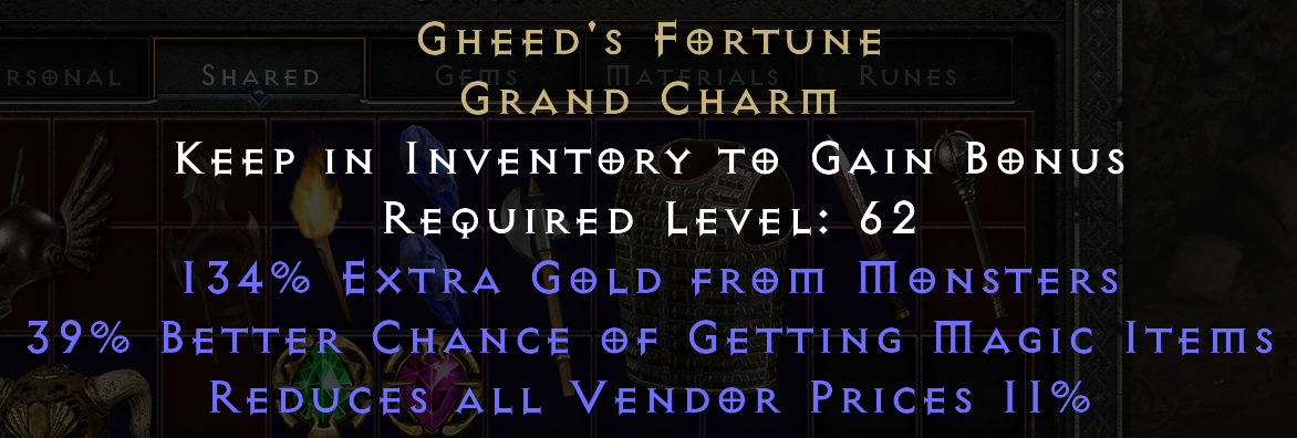 This includes Runes, Gems, Quest Items, Keys, Materials, and anything else in the 'Misc' section of the database.