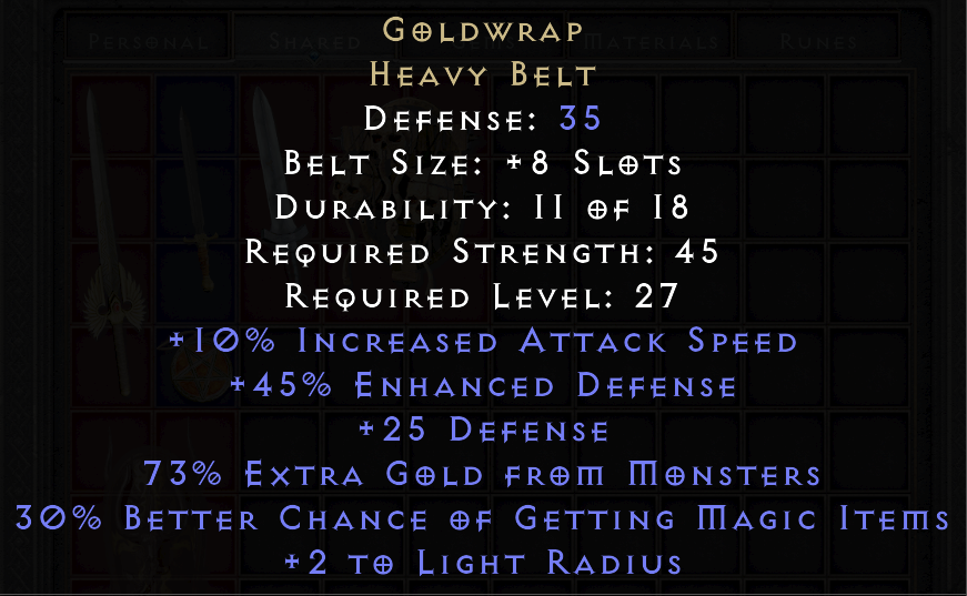 This includes Runes, Gems, Quest Items, Keys, Materials, and anything else in the 'Misc' section of the database.