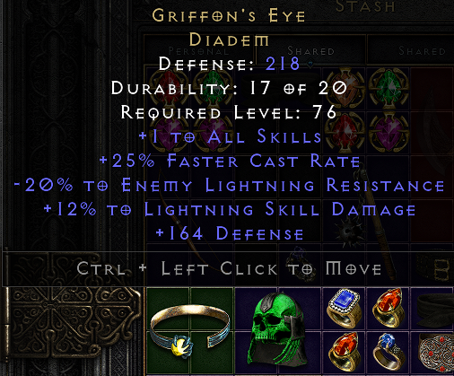 I found a 20 12 Griffon's Eye yesterday and I'm not sure wether I should sell it now while it's worth more or keep it as a lucky find on my D2R adventure and simply use it for myself. Apparently the first stat is much more important, so I would not be missing out a lot of dmg with this one.