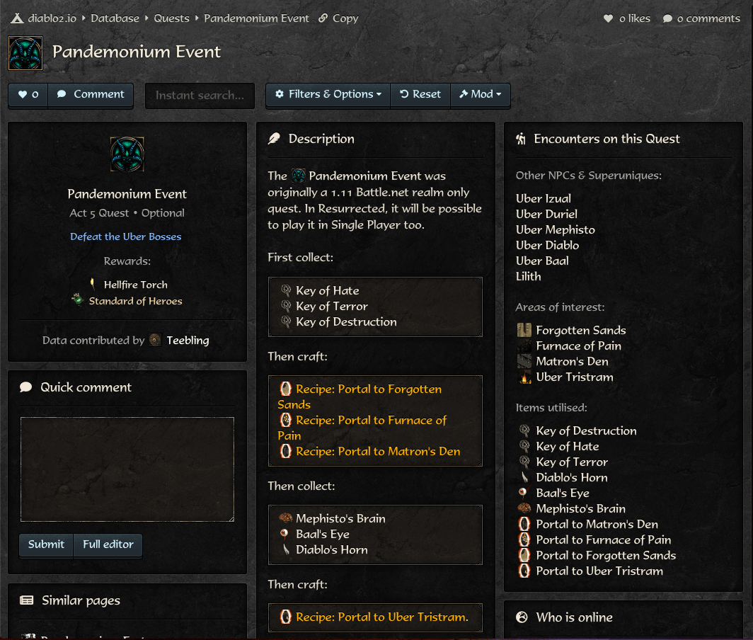 Annnnnnd all Misc/Quest items are done. I covered the Pandemonium Event as if it were a quest.