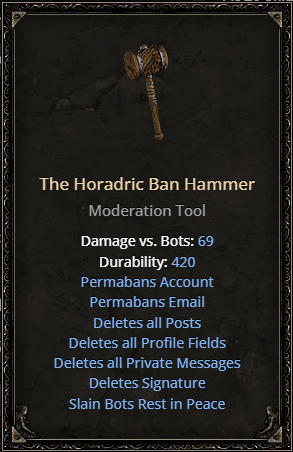 Give it required level ≥ 95 then. That'd be a loss even for the PK.Bounder wrote: 4 years agoThis would be mostly used for dying on purpose while hostile.flyingcar wrote: 4 years agoTassadar's Courage (Hardcore Only)