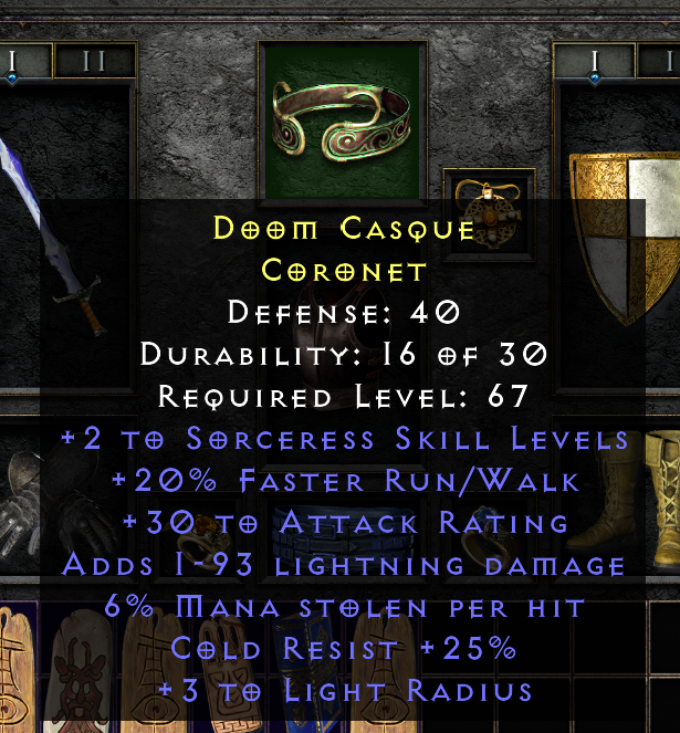 I'll start off with this fun Coronet I found. Nothing godly, but it's better than the Lore I was wearing!