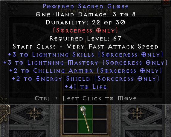 chop wrote: 4 years agoIf this gave +3 lightning along with +3 Lightning Mastery, in addition to +3 lightning skills, it would be worth quite a lot, since you could Larzuk it and potentially get 2 sockets.