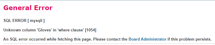 Pick "Gloves" advanced filter, search for "gloves" -> Unknown column 'Gloves' in 'where clause' Pick "Katars" advanced filter, search for "katars" -> Unknown column 'Katars' in 'where clause'