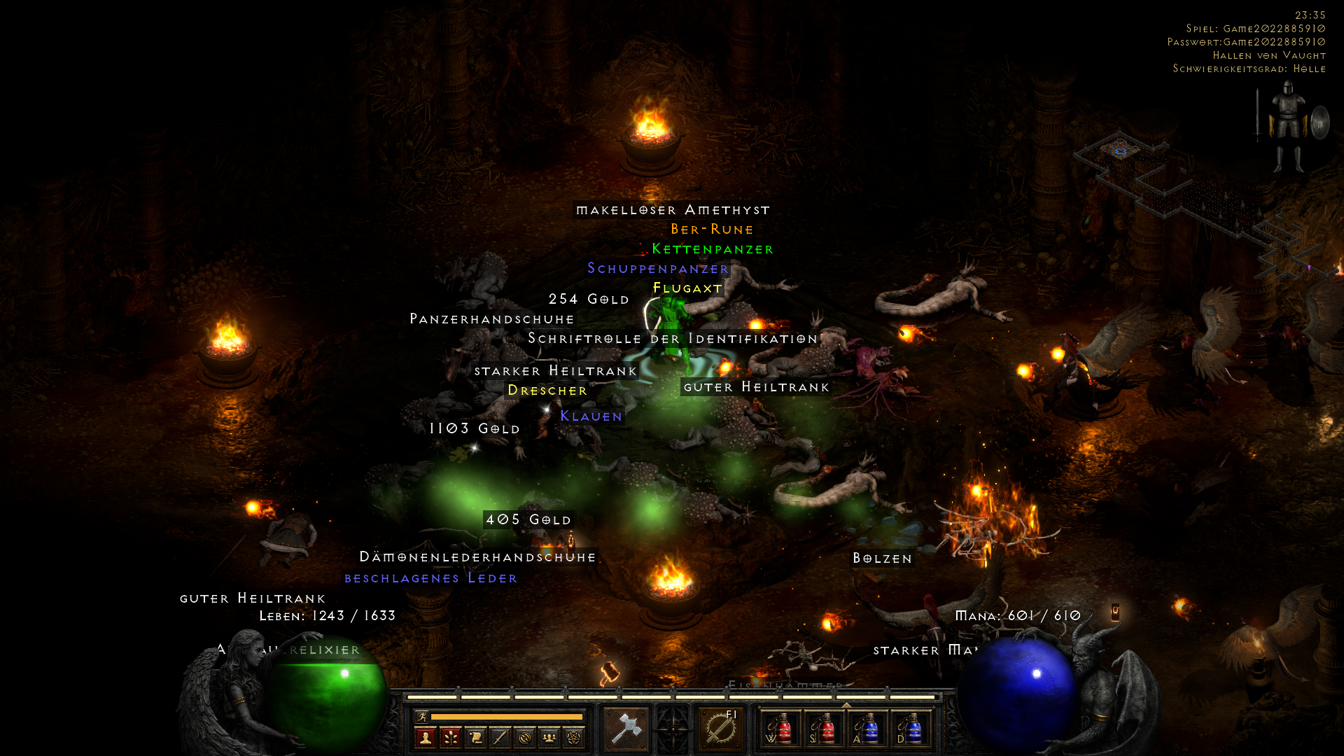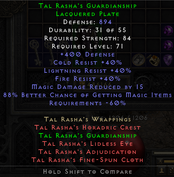 Having farmed my usual route with Countess, Cows, Pit, Summoner, Travincal, Mephisto, Chaos, Pindleskin, Frigid Highlands, Nihlataak, Baal over and over again with somewhere around 300 MF and without ever dropping something really great (an Arachnid Mesh which I'm now wearing was the best) I decided to stop worrying about MF for the time being and switch to cows instead. I mean, where's the fun in trying to find the best gear for each slot and then not being able to wear it because you're always using the MF gear anyways?, I thought to myself.