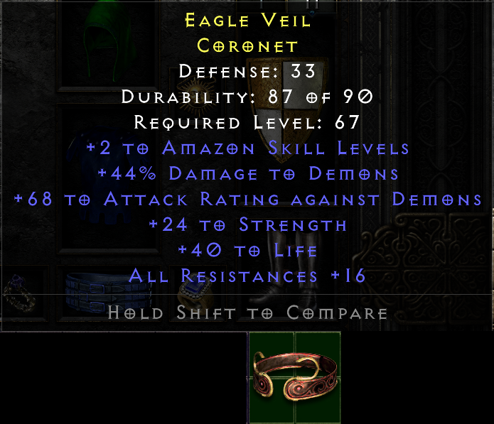 Ok, I thought perhaps the all res as well as 44% damage increase had some value as most mobs in the game are demons? The str is also decent to reduce point placement.