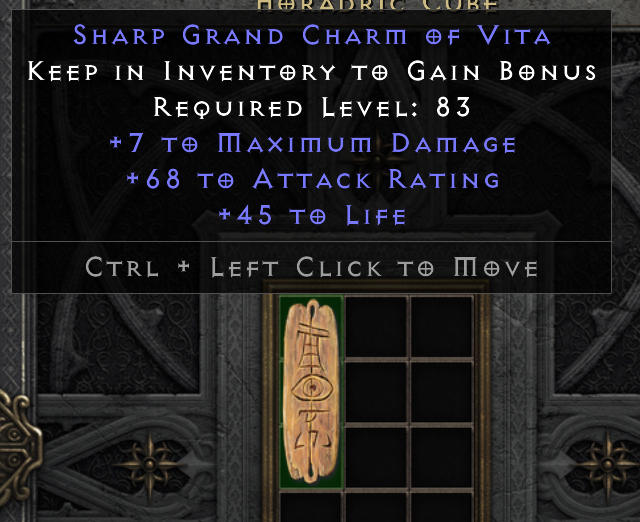 And because of the high REQ level right now, you can sell it as a Baal charm with proof.