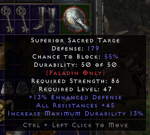 Well that's a trade, damage for max block and -%res on monsters so i do believe it has some use on sorcPasadei wrote: 4 years agoIt only makes sense for an Javazon. The light sorceress will deal less damage with this shield (cold the same, but I have not calculated for fire, but I do not think the situation will change, for lightning damage loss is more than 10%, for cold ~5%), and at the same time she will lose a lot of bonuses such as resists, fhr, fcr, life, mana.Lapwaire14 wrote: 4 years ago@chillzen