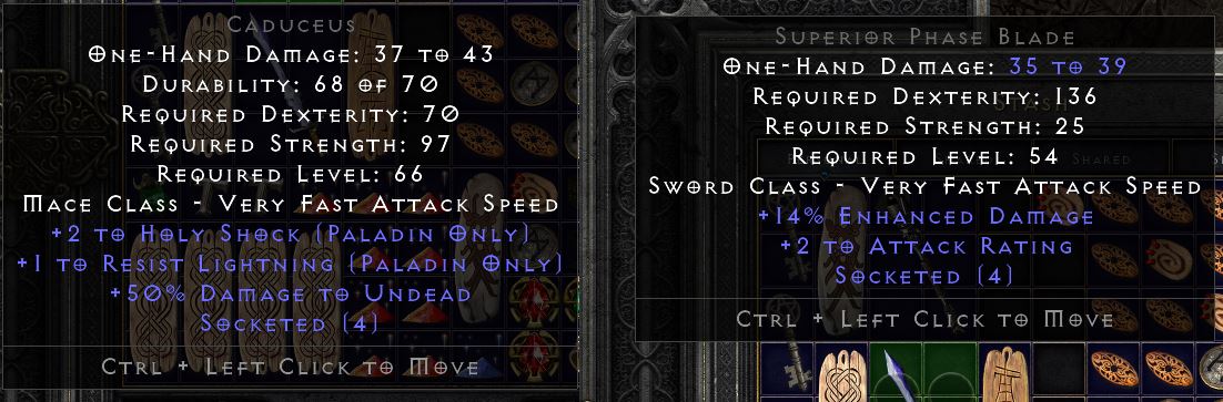 Of course, feel free to pick the Caduceus if you do respect style, are not afraid of repairing it and don't care much about those boring numbers. It is still fun even if not minmaxed af and without any merc at all (HoJ + Dragon + 2x Dream + Conviction). Just don't regret it when you spend tons of Gold or a Ral to repair it