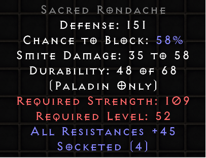 Prices seem to fluctuate alot when it comes to these paladin shields. I have seen from Ist all the way to Ohm for non Eth, non superior and same stats on different shield bases.