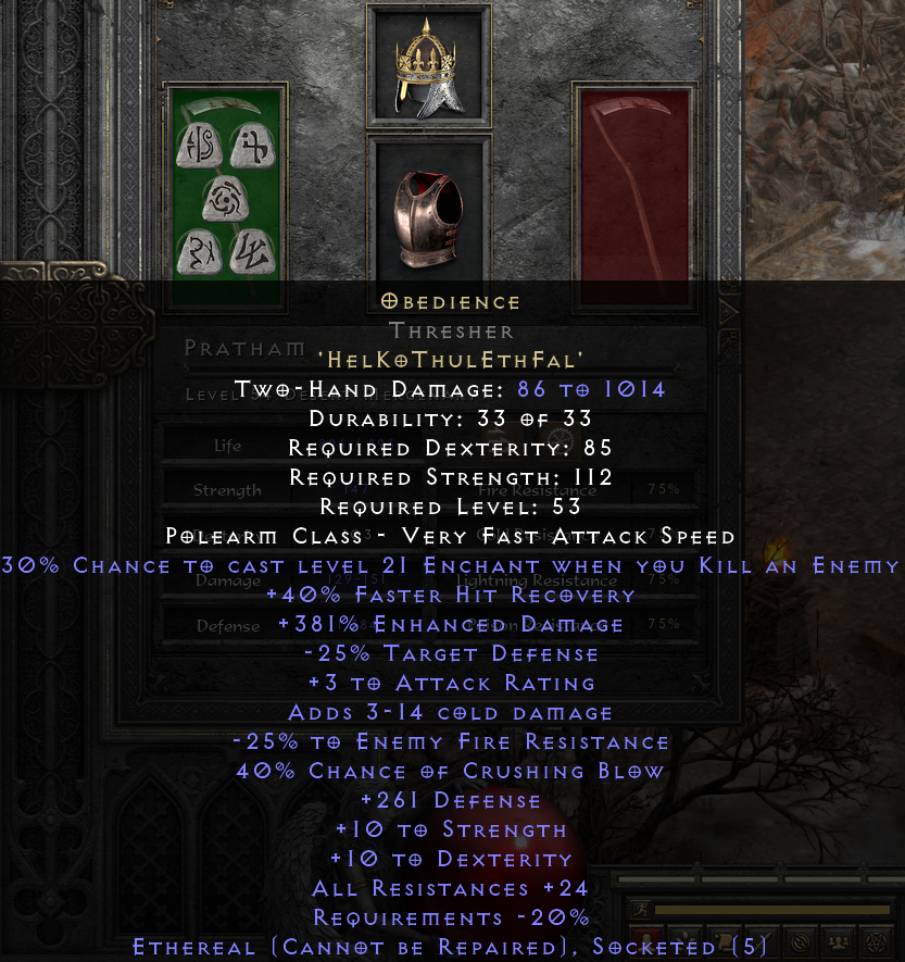 I have Emilio on my Assa, hehe...I have ready a Doom Thresher, then I'll swap Pratham for another to have both Holy Freeze and Might auras...rantha wrote: 4 years agoYe, i recommend to buy another act 2 merc. Pratham is not a proper name for act 2. Look out for Emilio.