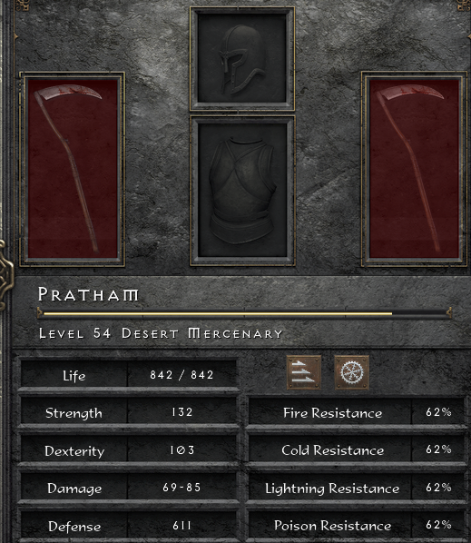 Incorrect, the one you want is Waheed, he's a pro but don't forget about my boy Bill from act 5rantha wrote: 4 years agoYe, i recommend to buy another act 2 merc. Pratham is not a proper name for act 2. Look out for Emilio.
