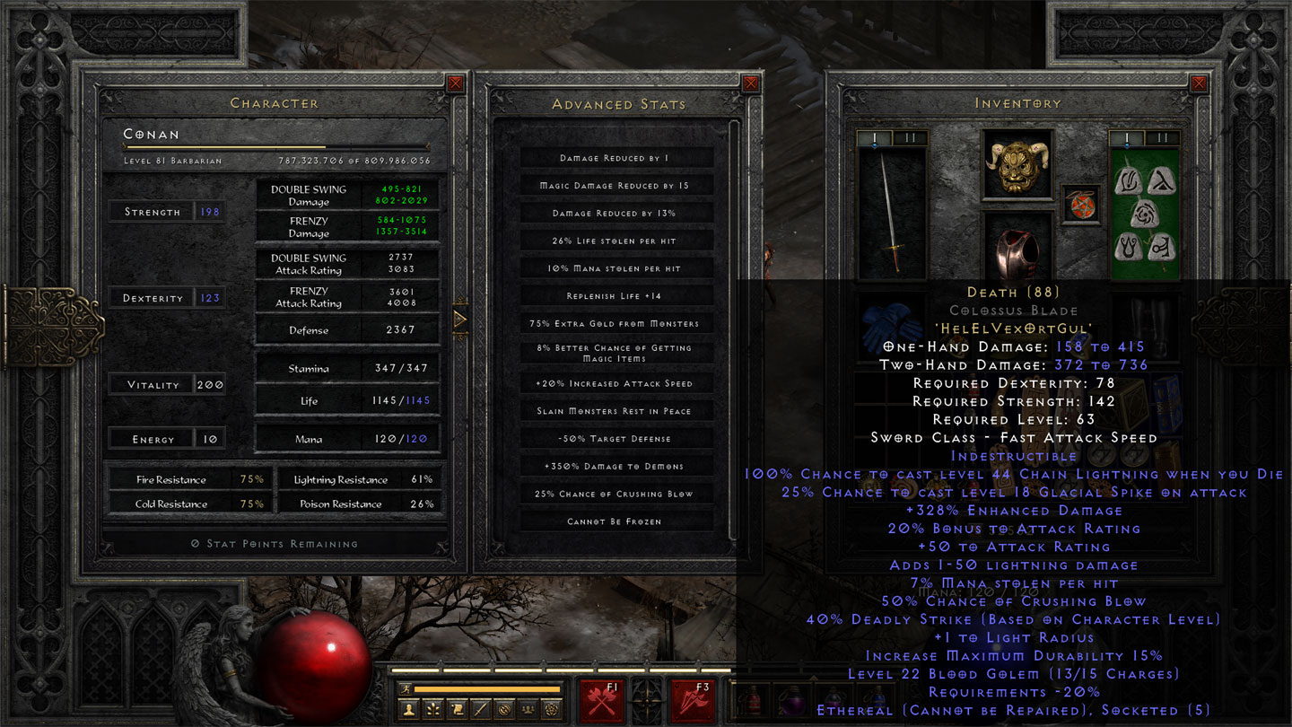 Get a Lacerator Winged Axe, has 33% chance to cast Amp damage on strike. Or get merc a Reapers toll for Decrepify. Gavel of pain hammer has 3 charges if Amp Damage and only 20k to refill. Spellcaster (Unique Axe) has Decrepify charges or Atmas Scarab (The amulet not Armor) has a 5% chance to cast Amp on striking + gives 20% attack rating bonus. All viable options without Berserk. Cause Decrepify only takes -33% where as Amp damage negates -100%. Had one of the hell ancients get Stone skin once and even with Amp he was physical immune, only guy I've ever seen Amp not work on.rgp151 wrote: 4 years agoJust killed my first true physical immune in Hell. This was a Grotesque Unique with Stone Skin, who, even after the application of Decrepify it remained Immune to Physical. I just kept on him with Frenzy however, and spammed Howl from time to time to keep everyone else away, and my merc focused him. I guess between the merc and bit of elemental damage I was doing, it got him down. Again, I'm not spec'ed into Berzerk. Not worth the 3 skill points IMO. This kinda proved that to myself. I think between Howl and other means of dealing with physical immunity, Berzerk isn't worth it for a Frenzy Barb.