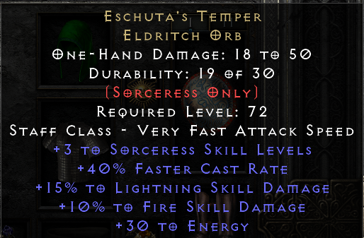 rune (+5% max fire res), and giving him an Andy's Visage socketed with a