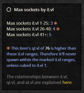 So looking at Stormlash, it is pretty expensive and there aren't very many on the market right now. so i am thinking of shifting gears to a Black in a three socket Scourge. I noticed this on the database page. How can i cube it to lower its Ilevel to 1 so i can gurantee 3 sockets at Larzuk?