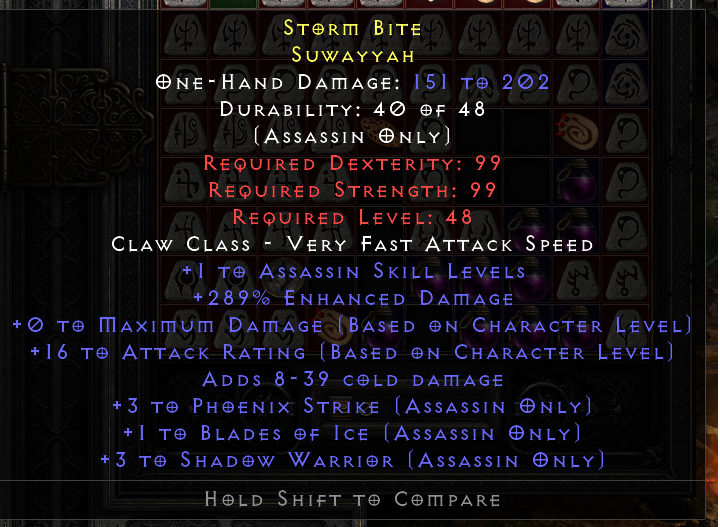 With the high damage you might think these are good martial arts Claws, especially with the +3 to Phoenix, but most of those skills that are any good in 2.4 (including Phoenix Strike) add on elemental damage instead of being based on weapon damage. I've never built a bladesin but maybe that, since it's based on weapon dmg.