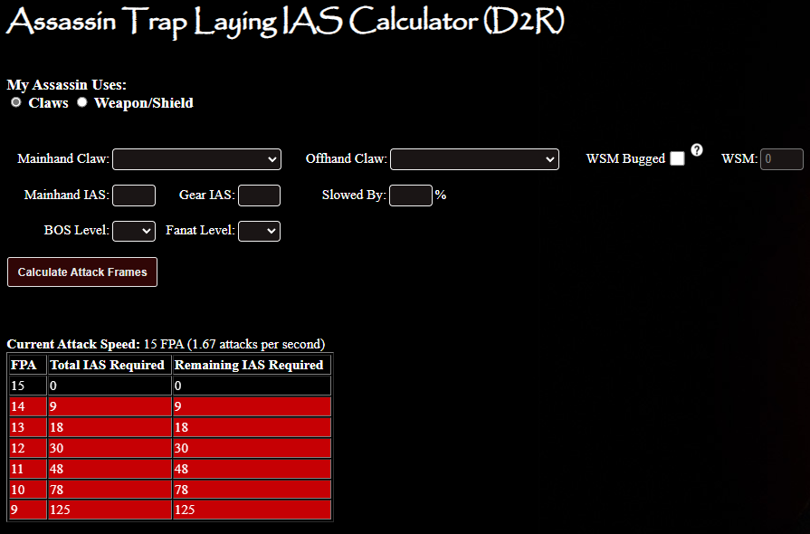 Trap Laying IAS - Assassin Trap Laying IAS Calculator (D2R).