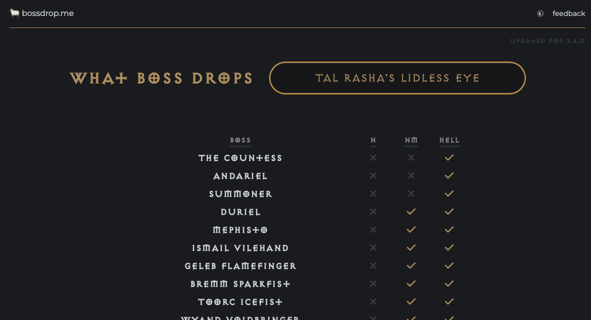 Great and minimal tool for seeing which bosses 'can' drop any item specified in the search.