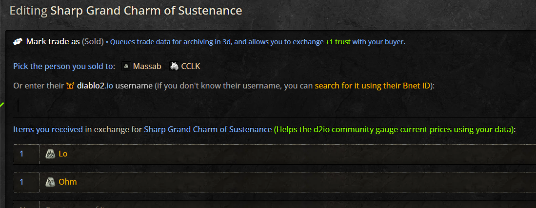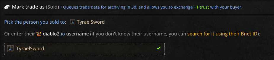 Got some action in one of my trades, was able to successfully select the user and have it displayed correctly on Mark Sold. Looks like caching after all, sorry for the trouble.