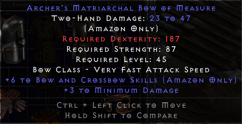 Thanks man, if it had 2 sockets from Larzuk +40% ias suffix and +6 bow and Crossbow skills, we might be cooking.