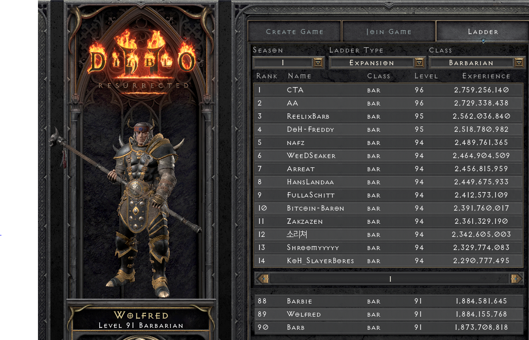 Leveling process was to max Bash/double strike through tombs, then immediately respec to Conc/BO focus with value points in Leap. This let me support a Trapsin and Fire Druid night 1 through normal and nightmare while giving huge buffs. Slammed a bunch of points into Find Item through nightmare and horked myself a pair of chancies and a few mid runes to swap for Wolfhowl and Ribcracker.