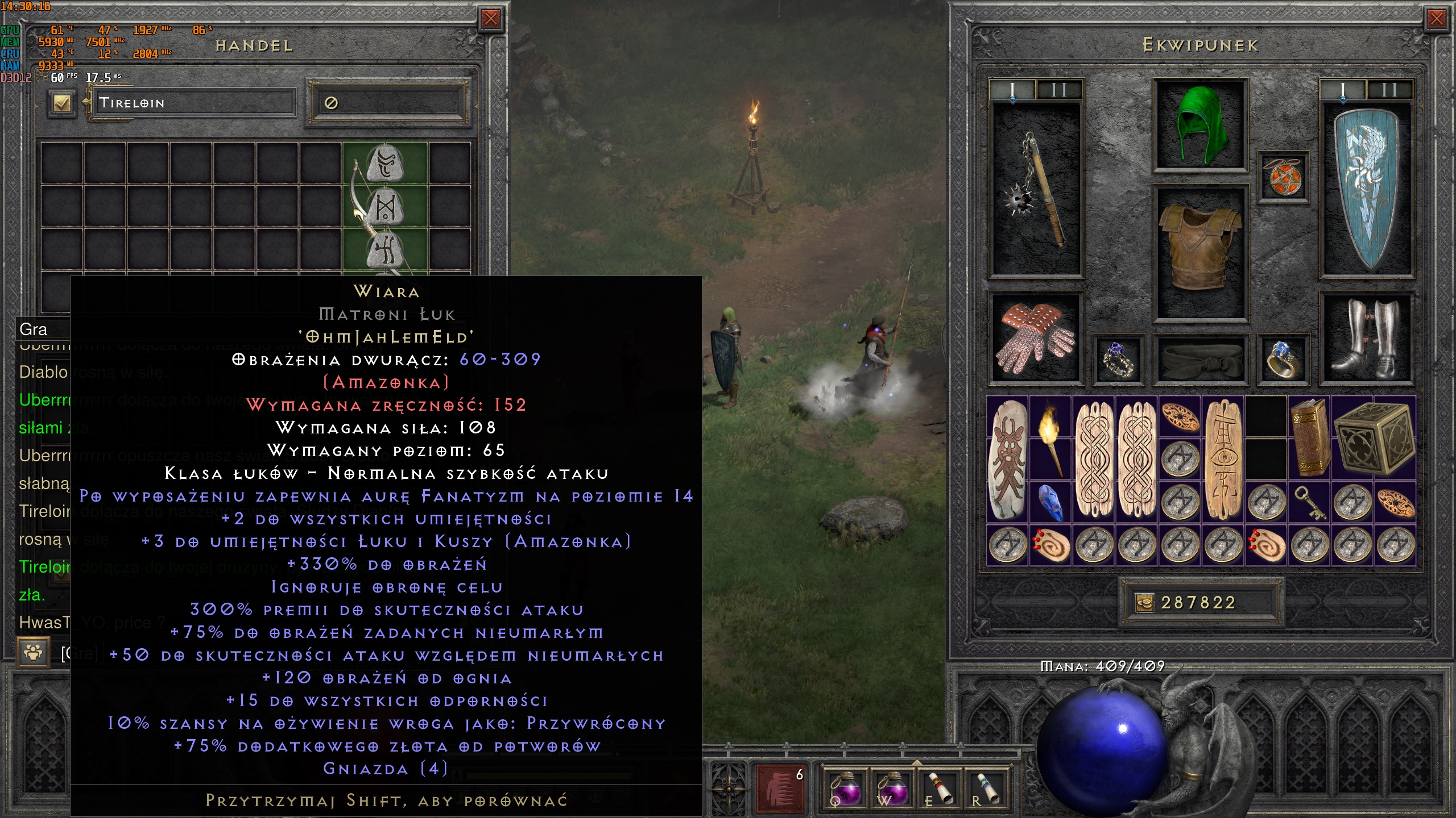 Thats main part of story: I decide to buy Faith to my "In build Bow-amazon" (almost all rest stuff are collect from long time - no Coronet ,with jews ,and Faith for merc only.) i have 43 on this char from half year but i try go thru leveling from 2 days and i make progress i have 43