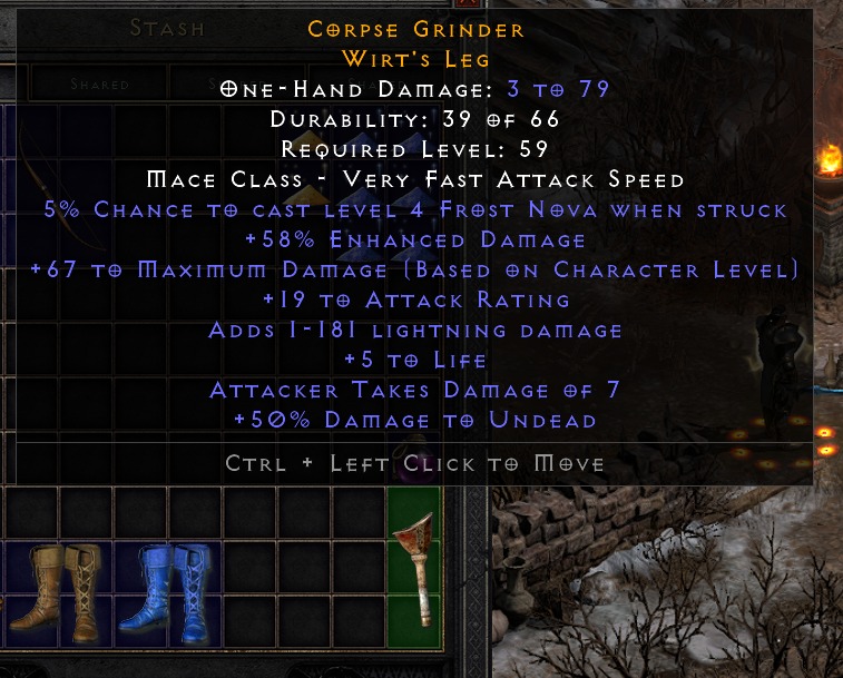 Then you can use the the craft recipe for maces: Tir + Perfect Sapphire + Magic Jewel + Magical Wirt's Leg to get a crafted Wirt's Leg.