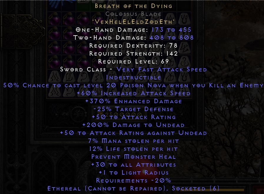 I wanted to give my barbarian Beast in one hand to reach max attack frame, and in the other hand take Death in ethereal base for crit and crash. I was told not to do that and take 2 Grief, but they didn't explain why. Explain, please, who knows why I was told so.