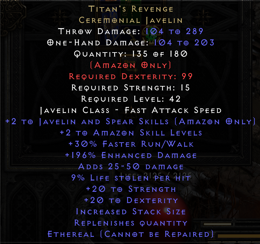 I can see the benefit, but I was wondering if it's possible to use a mercenary as a loaded weapon? Both my main build and my mercenary are just about kill proof, but I have several others in the works. Just a thoughtSchnorki wrote: 3 years agoFor SC, the 'when you die' is in fact preferred.mhlg wrote: 3 years agoWhether or not this is luck is yet to decided. I mean who wants a skill that only works when your char dies? On the other hand a level 51 Poison Nova should be effective on non poison immune. So I got to thinking. What if I placed on my mercenary? Will it works as well? If so then it might actually be useful.