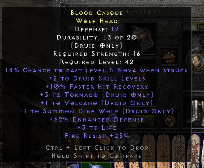 Description by I found this druid pelt and i was wondering about the value it could have, it has +5 to torando but im not sure about the other stats.