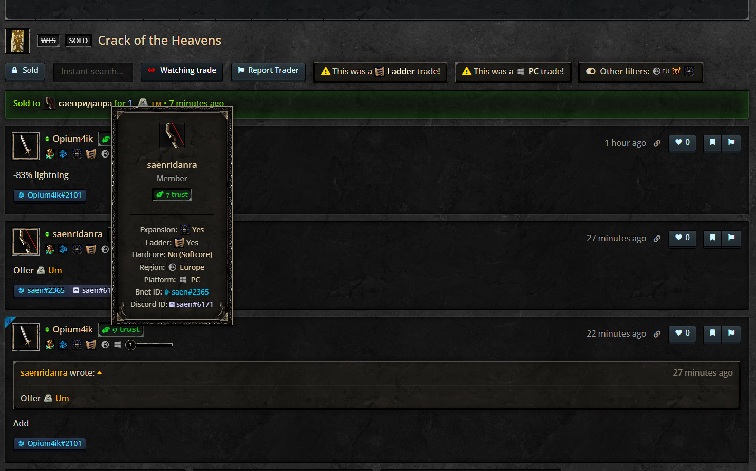 Super weird that guy used cyrillic for both the item sold report and the user sold to. I'm guessing they have an auto-translate feature running in their browser.