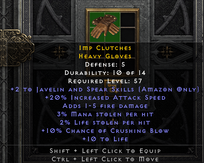 2/20 with dual leech and perfect crushing blow. That's some awesome gloves.