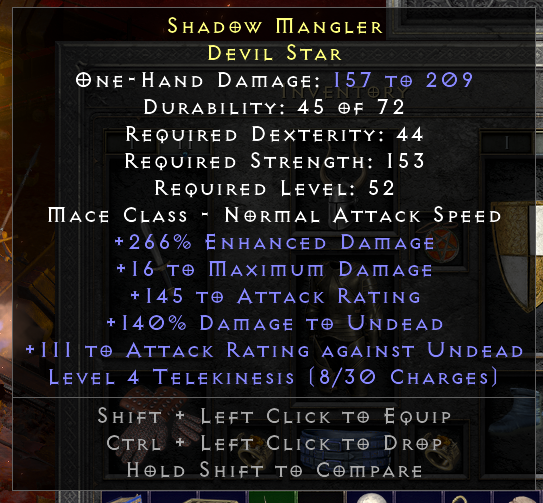 Never seen any kind of stuff like this having a value due to runewords or uniques being much better (Grief etc.) but I am no expert on melee stuff. Pure damage is quite good but that's all. Let's wait for a second advice, but I would tend to see this as a practical stuff to level up, no more.