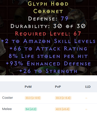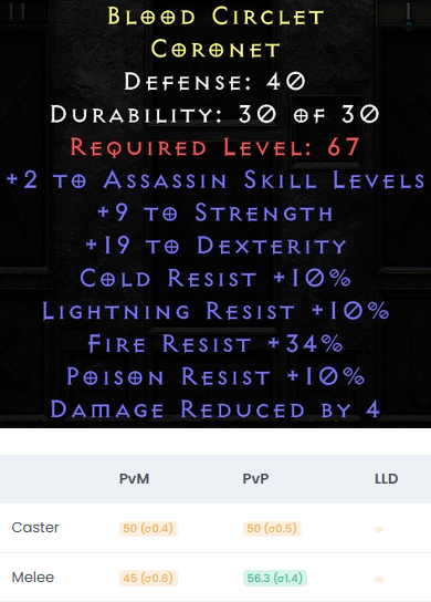 As a note a Circlet should have something special which most other helmets don't offer like faster cast rate. Without that you can just use a Harlequin Crest or an Andariel's Visage or something like that which are available for an Ist or less and a lot better in most cases.