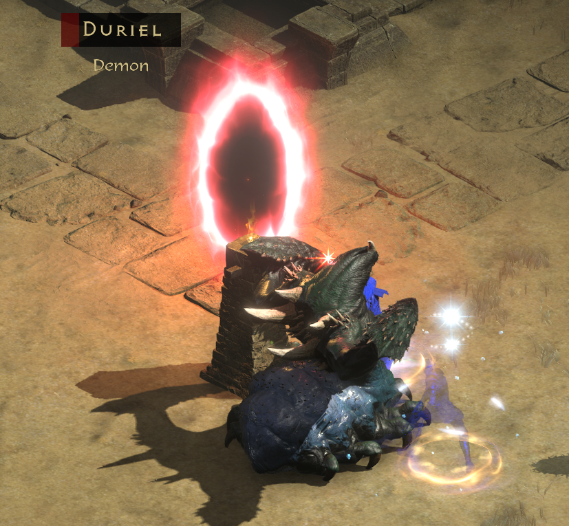 The only challenge in the entire run (and cause for my use of pots later on) was Baal. Not because he's tough but because I managed to mess up the pull, got both him and Diablo at the same time initally and was so overrun with adds that I genuinely could not find Baal to click on him anymore. Took forever to sort that out. Could be avoided by simply having more suitable Key mappings for this so you only change the action for your click and keep him locked (rather than alternate buttons and have to re-click like I did out of habit). If you do get overrun though, his phys immune adds cause your explosion to also do no dmg (since you had no base phys dmg to start with), meaning noone is taking any damage. Except for eventually you because no dmg = no leech. Honestly though, even with both of them and a million adds, it still took absurdly long to actually take any noticeable damage.