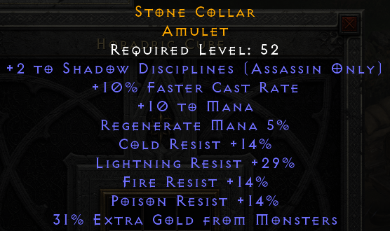 crafted Amulet +2 shadow 10%fc light res29/all res14