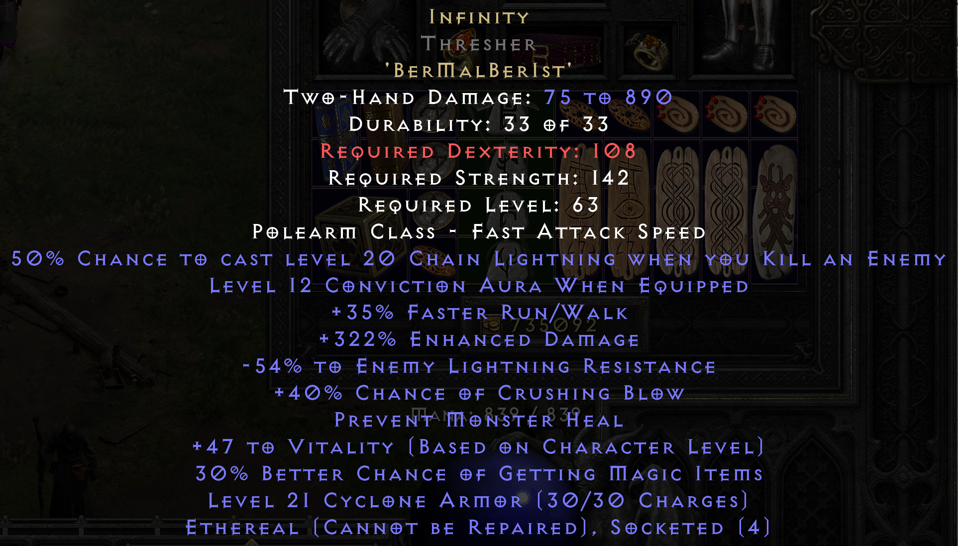 This is my first post in this thread since d2r released. I just logged on right now to do Ubers with my smiter. This requires me to transfer my Grief from my barb over to my pally. So I said what the hell I might as well do a quick Travincal run since I’m here. I ended up horking a Ber rune on my first and only trav run of the day lol!