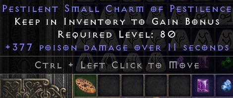 AFAIK it's the second best one with Pestilent Small Charm of Anthrax (451 psn dmg over 12 sec) as the best psn dmg small charm.