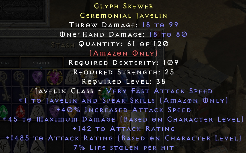 AFAIK for javazons most of the damage comes from skills so you want as much +skills and ias as possible. While 40% ias is good, +1 to skills is not enough to have some value.