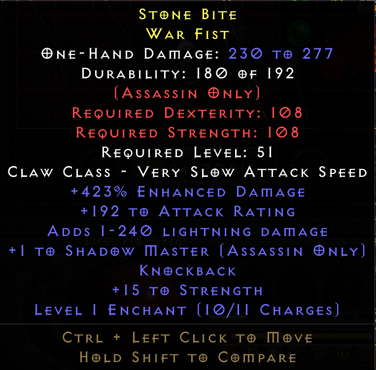 Needs 30+ IAS and fools mod with high ed to be valuble for trapper hybrids, ghostsin, spidersin etc your looking for that high ar boost with Chaos in off hand, if it does not have 30-40ias 270+ ed and fools mod a Fury claw in mh is better.