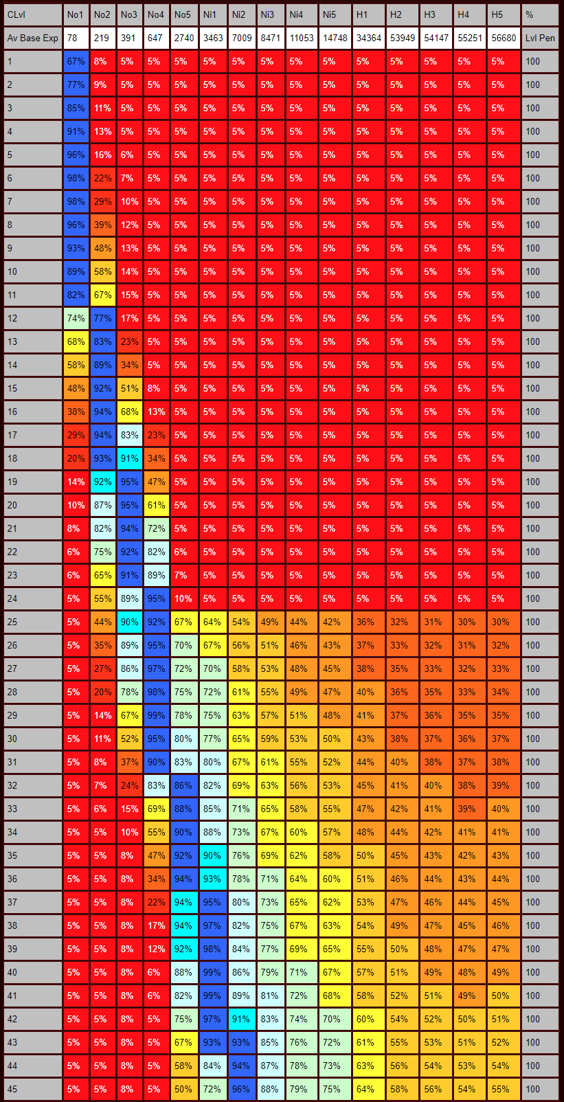 >_<Snakecharmed wrote: 3 years agoNormal Acts 1-5phantomotap wrote: 3 years agoI have no idea what those charts say. I get that blue is the sweet spot, but I have no idea what "No1," "No2," and so on are for this chart. I see they are leveling spots in the various difficulties, but I don't know which ones from what was posted.